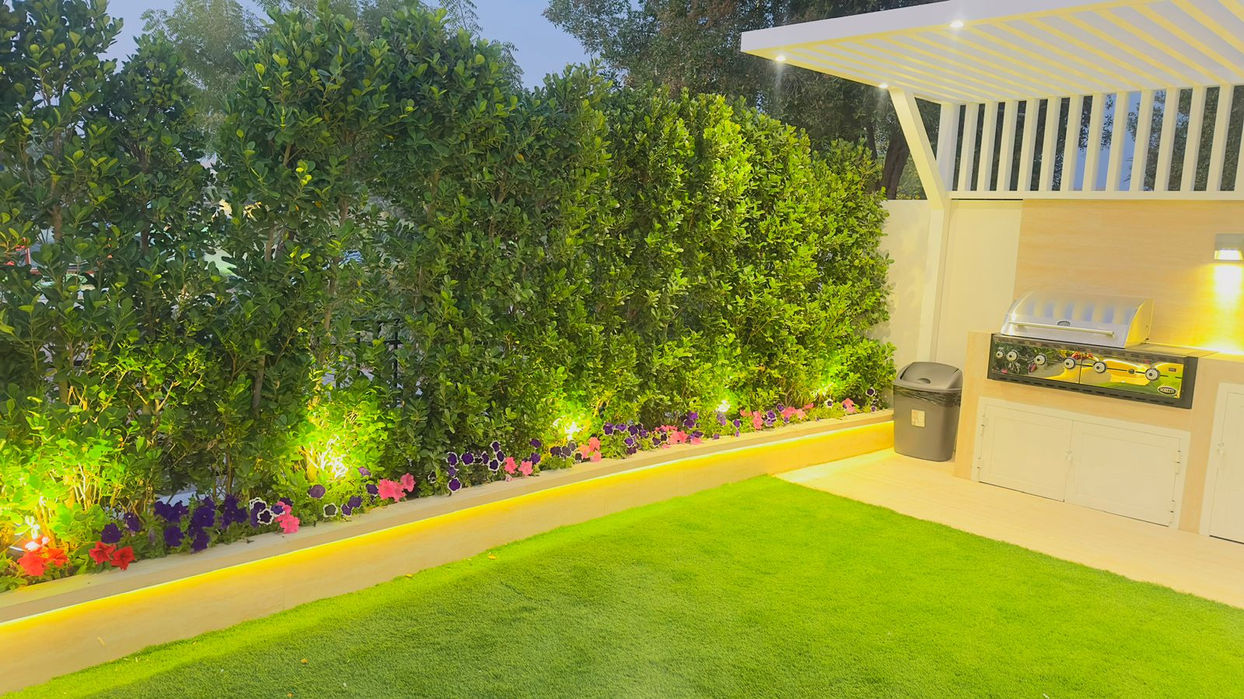 A tailored landscape and pavilion installation designed to enhance the outdoor lifestyle of Jaber Villa at DAMAC Hills. The scope integrates structured planting, clean architectural lines, and a custom pavilion that provides both shade and visual anchor to the garden. Surfaces, pathways, and seating are finished with refined materials that emphasize comfort and durability.